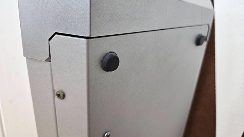 裏面には小さなゴム足が4つ付いています。ライブの際はバックパネルにプチプチを貼り付けて、骨盤に当たっても痛くないようにしています。