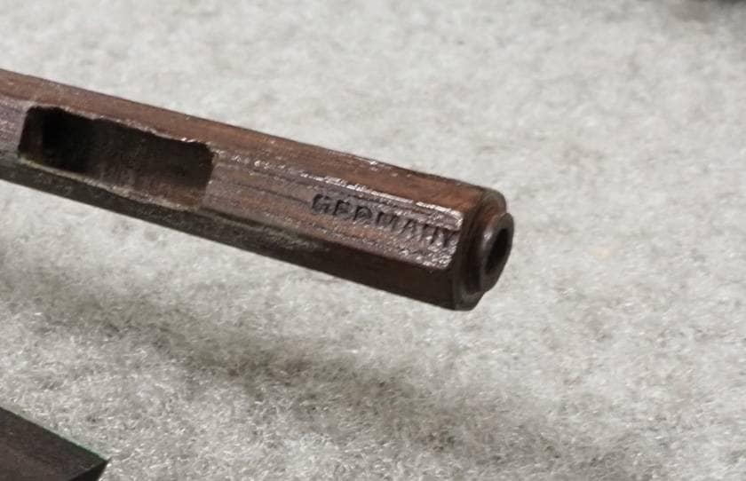 でもスタンプもないこの弓はどうやってドイツ製、と見分けるの?と思われた方、良いところに気が付きました。実はブランド名のスタンプ、というのは押されていませんが、スティックのフロッグ取り付け面、スクリューの近くに「Germany」スタンプがあるのです。