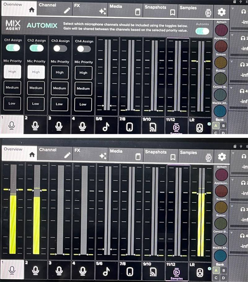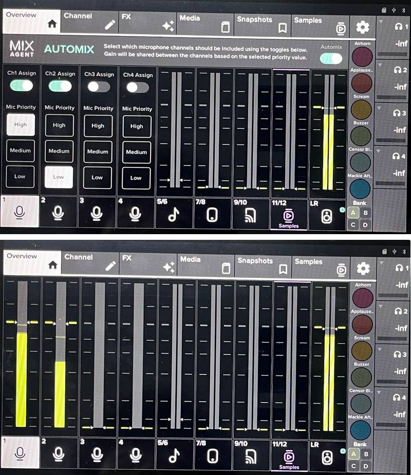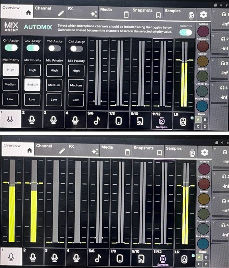 例えば、ポッドキャストのような場合で、ホストのマイクに「High」を、ゲストには「Medium、またはLow」を割り当てるといったことが考えられます。放送の場合も同様です。実況アナウンサーと解説者がいます。彼らは、ブースや現場にいる特別ゲストよりも高い優先度が与えられます。ラジオ局でも、メインホストとそのゲストに AutoMix を使用することができます。
