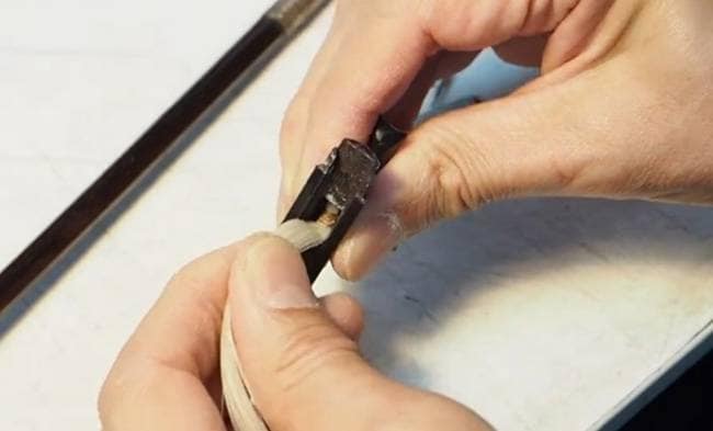 それでは毛替えの全工程を動画にするわけにもいかないので、今回は実際に古い弓から毛を外す作業をご覧ください。