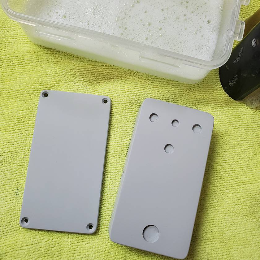 市販のエフェクターではほとんどの場合吹かれていませんが、吹いていた方が仕上がりが綺麗、というか後の工程が楽なので、私は塗装の際は毎回吹いています。