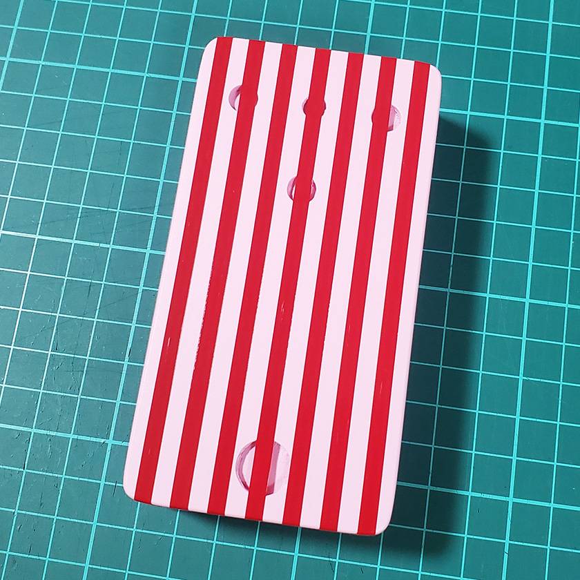 今回ストライプ柄にしていますが、物体に対してまっすぐ貼ると言うのが意外と難易度高いんです。