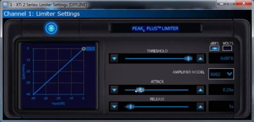 過大入力によるスピーカーの破損や、アンプのクリップ(歪み)を防ぐために出力を制限します。