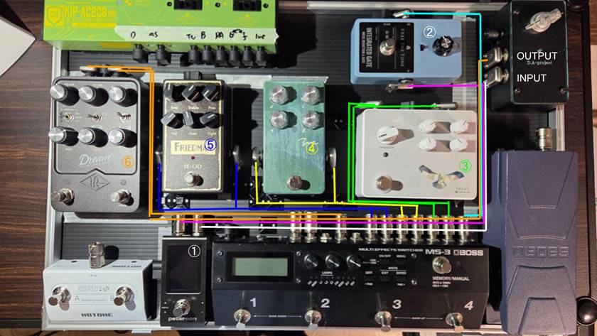Input(ジャンクションボックス) → ①チューナー → ②ノイズゲート → MS-3 →