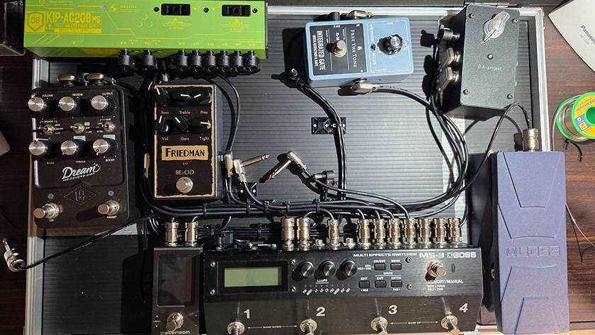 このようになっています。EV-30とAmpero Switch+はMS-3のコントロール用としてTRSケーブルで接続します。が! 実はAmpero Switch+は MS-3のバンク切り替えに使用することができません。私がそれに気づいて絶望するのはまだ少し先の話です。皆さん、動作確認は”ボードを組む前に”ちゃんとしましょう、、、