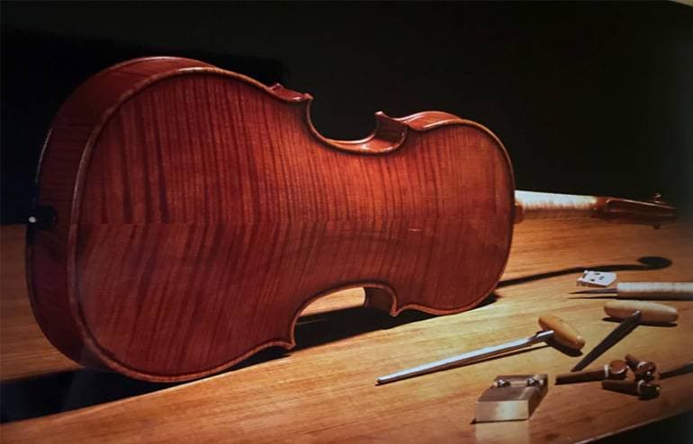SUZKI VIOLINの上級グレートチェロ、No.80エターナルチェロ。職人による手作りの本格的チェロ。裏板はもちろん、横板、スクロールにまでトラ杢がくっきりと入ったメイプル材を厳選しており、細部までより良いものを選んだ、上位グレードならではの仕上がりです。