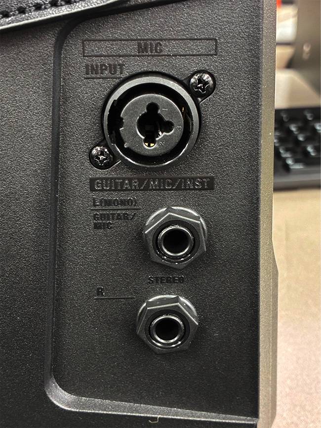 MICチャンネルのINPUTはコンボジャックになっており、XLR端子でもフォン端子でも接続可能。GUITAR / MIC / INSTチャンネルはステレオに対応しているのでキーボードやステレオ出力のギターエフェクターなどはステレオ接続してより広がりのある音像で出力することが可能です。