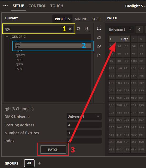 パッチとは、灯体をより簡単にコントロールするために、ライブラリから灯体プロファイル(SSL2ファイル)を選択する作業のことを指します。