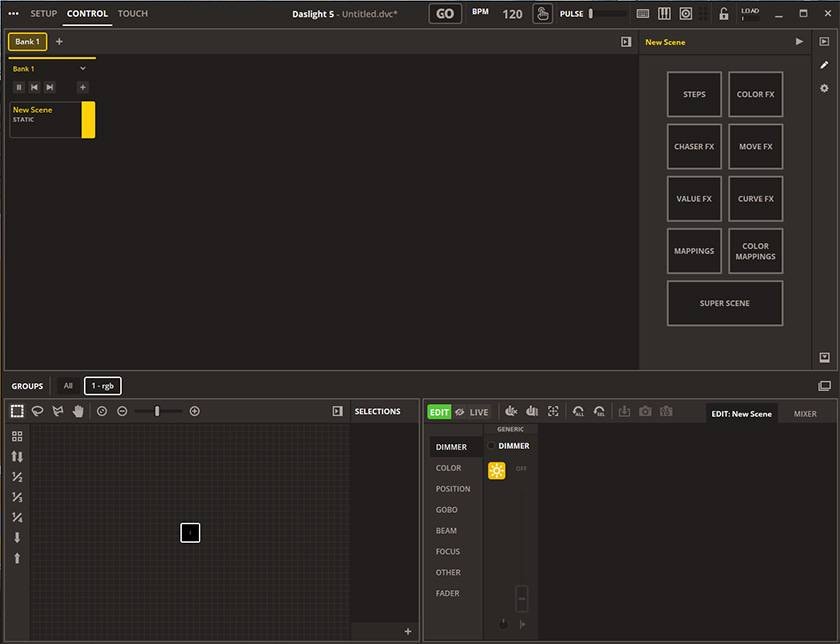 すると、このような画面になります。CONTROL画面では、照明の操作やシーンの作成を行うことができます。