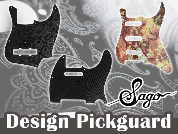 Sago design pickguards are now available!! Each pickguard has an elaborate design printed on the surface to give it a unique presence that you won't find anywhere else. The patterns are all novel designs including paisley and a real rust-like rusty, and so on! Sago offers a wide range of pickguards for standard shapes including Stratocasters, Telecasters and Jazz Basses.