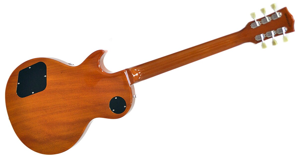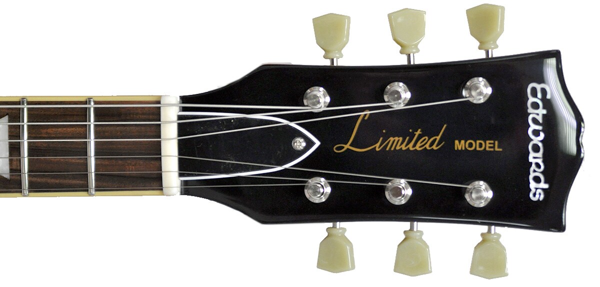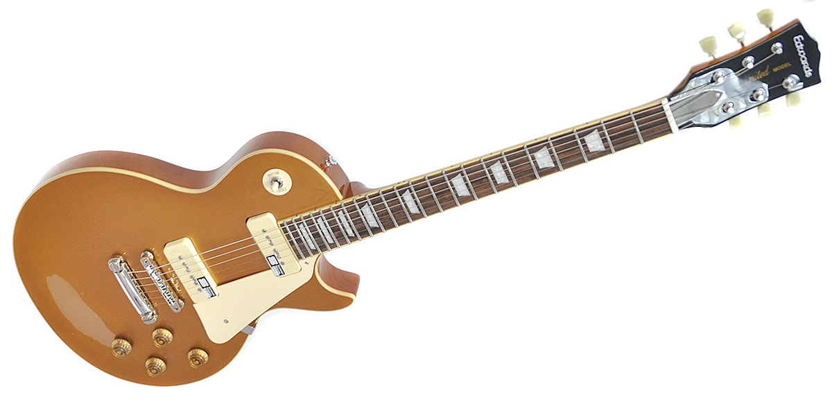 This is my second Edwards Les Paul, and it is also great. Earlier, I bought the Black Beauty model , so I wanted something quite different this time. I have always liked the sound of P-90 pickups, so I decided to buy this replica of the original Gibson model. The pickups are Seymour Duncan, which have an excellent, clear ringing tone. I play a lot of old CCR songs, and these two guitars can handle them all easily. It is very well built with chrome Gotoh hardware, a flawless dark gold finish on a maple top, and a one-piece mahogany back 『from SE Asia, not Brazil』that is really quite beautiful. Straight out of the box, all I had to do was a slight neck adjustment, and then it was perfect. The intonation was set accurately at the Saitama factory. I have bought SKB 56 cases from Soundhouse for both of them. The bodies and necks of Edwards guitars are carved in NE China, then they are sent to Saitama where everything else is done. Great guitars!
