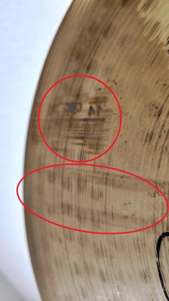 どうやら「ロゴ印刷部分」や「バイアステープ(バイピングテープ、ふちどりテープ)」が湿気を吸収し、それがシンバル表面に「青サビ」を発生させるようです。