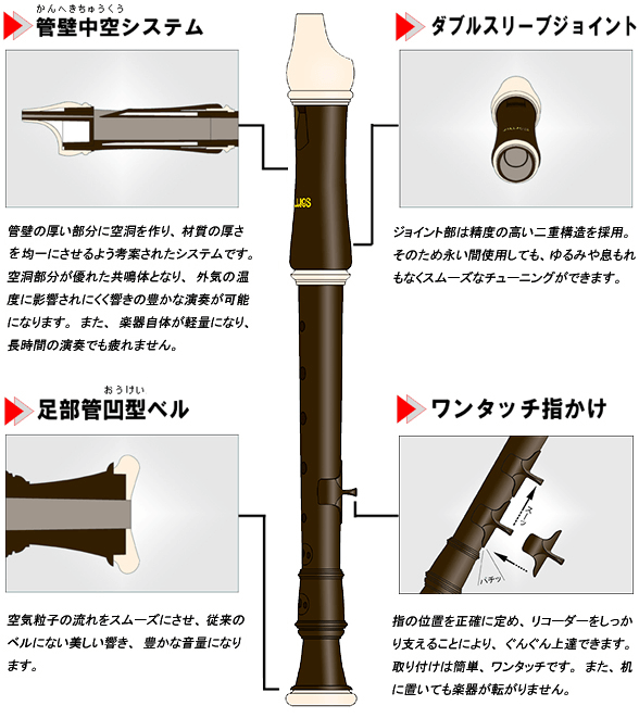 ギリシア神話に由来する「AULOS(アウロス)」の名のもと、1955年に世界初の樹脂製リコーダーを誕生させました。