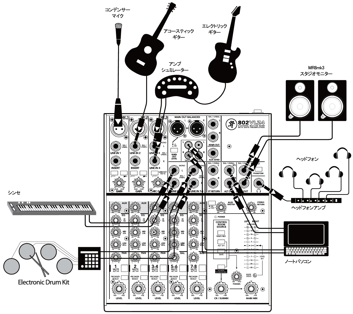- チャンネル1・2には楽器入力切替機能(DIボックス不要)