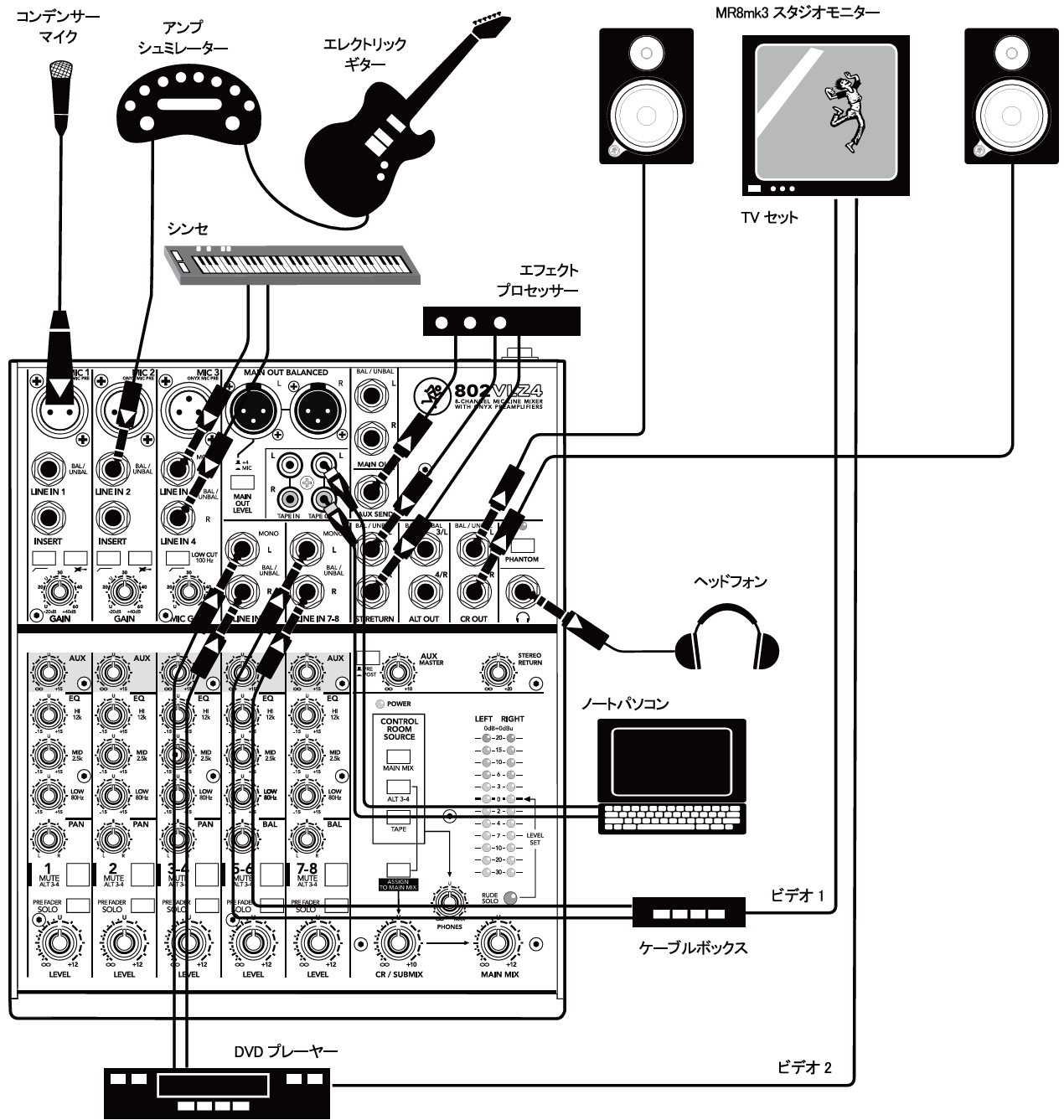 - ステレオリターン端子により、エフェクトプロセッサーや外部ステレオ機器と接続可能