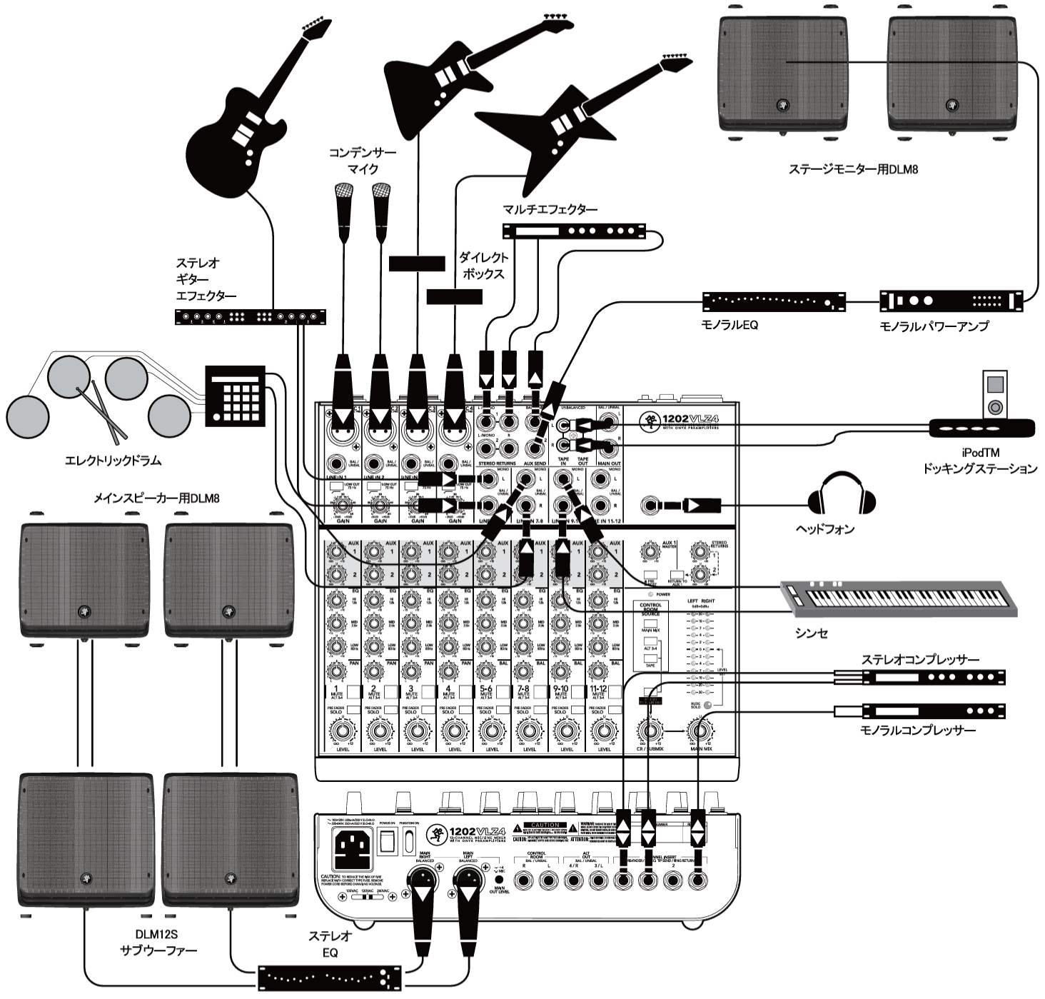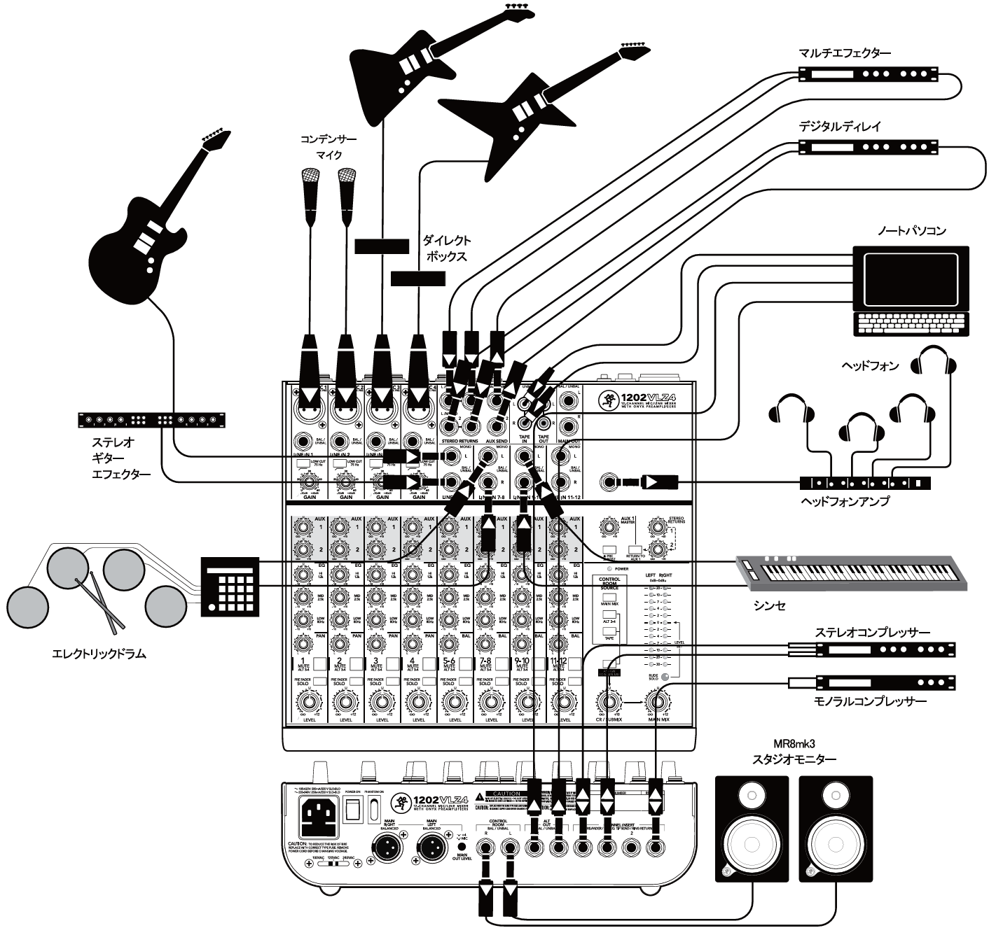- エフェクトプロセッサーや他のステレオソース接続用の2系統のステレオリターン