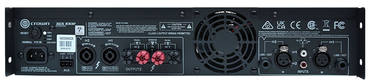 AMCRON XLSシリーズは、5kg未満と超軽量、そして高いコストパフォーマンスながらDSPを搭載した人気のデジタル・パワーアンプです。内蔵されているクロスオーバーは、フィルターなし、ローパス、ハイパス、バンドパスの4種類から選択することができるので、フルレンジ、サブウーハーなどスピーカーの特性に合った設定をすることができ、2ウェイ・システムを組む際にとても便利です。また業務用パワーアンプだと、入力はXLRとフォン、出力はスピコンだけという仕様が多いですが、XLSシリーズは、RCA入力、バインディングポスト出力も用意されているので、接続する際にコネクターを気にせず使うことができるというのも嬉しいポイントです。低域から高域まで全体的なバランスが良く、クリアでクセのないサウンドキャラクターは、トークイベント、運動会、学園祭、ライブといろいろな場所で活躍すること間違いなしの一台です。