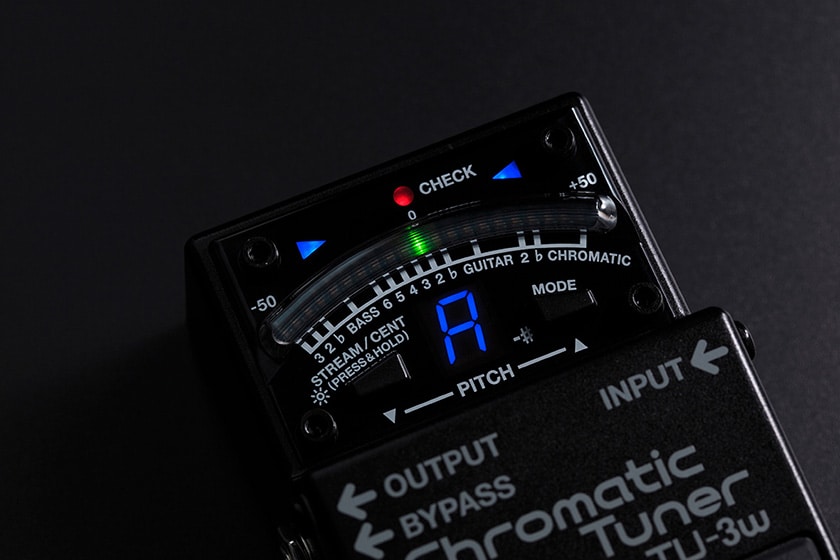 あの超定番TU-3とは見た目も中身も似て非なるTU-3W。オールブラックボディなので液晶ディスプレイの表示が映えて、とってもクールな印象です。さらに青色LEDは暗闇でも視認性抜群。そして注目すべきはこのWAZA CRAFTにしかないバイパス方式の切り替え機能です!BOSSと言えばバッファードのみの切り替えでしたが、このTU-3Wでは、トゥルーバイパスを選択することも可能になっており、原音に拘る方の選択肢にも入るモデルになりました。多くのレビューにもあるように、見直されたバッファー回路の音はとても自然で、エフェクターを通した時の音質はむしろ上がったように聴こえるほど。世界基準といわれるチューニングの機能は申し分なく、音質に拘るギタリスト・ベーシストには一度手にとっていただきたいペダル式チューナーです。
