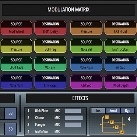 モジュレーションホイールでリバーブテールを動かしたり、LFOやアフタータッチで MIDAS マルチバンド・ディストーションを変化させたり──19のソース × 130以上のデスティネーション による圧倒的なルーティングが可能。“Press & Hold” のショートカットを活用すれば、ソースやデスティネーションの選択も直感的。ライブでも制作でもすぐに思い通りの動作を作り込めます。