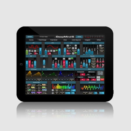 DeepMind12同様にプリセット音源の実用性が非常によく、音を作り込むのが苦手な人やシンセ初心者でも比較的手軽に演奏できるのが魅力です。また、パネルレイアウトも分かりやすいため、ライブパフォーマンスで直感的にエフェクトをかけたり、波形を切り替えたりできます。この演奏感、巧みに操っている感はDeepMindシリーズの大きな特徴でもあります。また、専用のエディターソフトを無料でダウンロードできるため、タブレット端末から各パラメターの調整を追い込むこともできます。実際にiPadで試してみましたが、Overviewなど7つのページを使って、本体だけでできる操作を超えたさまざまな操作ができました。中でも、4つのプリセットを複合できるPreset