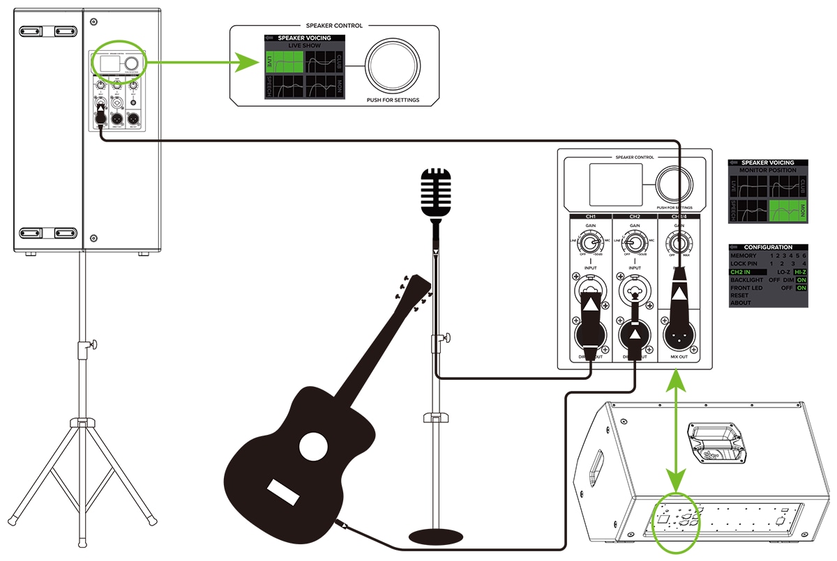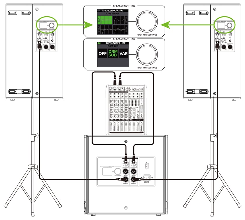 - ライブ、モニター、クラブ、スピーチなど、用途・会場に応じたモードを搭載。サブウーファー独立オプション(可変クロスオーバー)も利用可能。