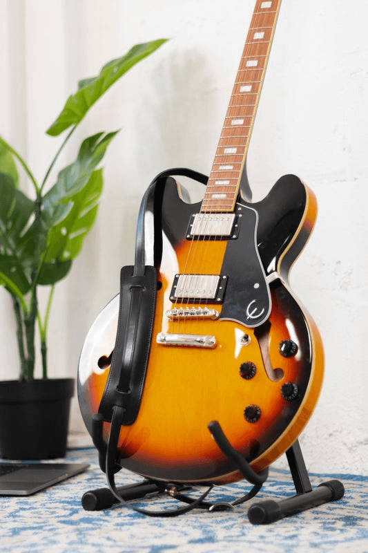 アンティーク感のある細身のベルトデザインを選ぶならこれ。細身ストラップで一番不安なのは肩への負担ではないですか?実際に触ってみると、肩にあたる部分は想像以上にパッドが効いており、演奏時の負担も軽減!革製ストラップにこだわって製作してきたLEVY'Sだからこそ、安心感も抜群ですね。ロカビリーやロックに生きるギタリストにはまず使用していただきたいシリーズです。