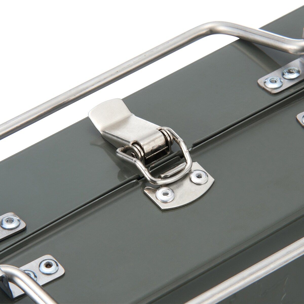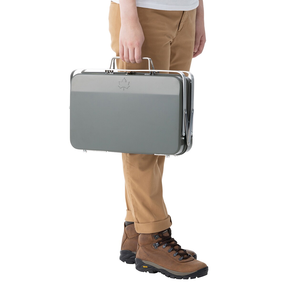 A stylishly designed grill that turns into a grill when you open the attache case. The grill net and fire bed are stored in the case, so you can easily enjoy BBQ by simply opening it and setting it up. The case has a handle and a lock, so it is easy to move around on the train or on foot.