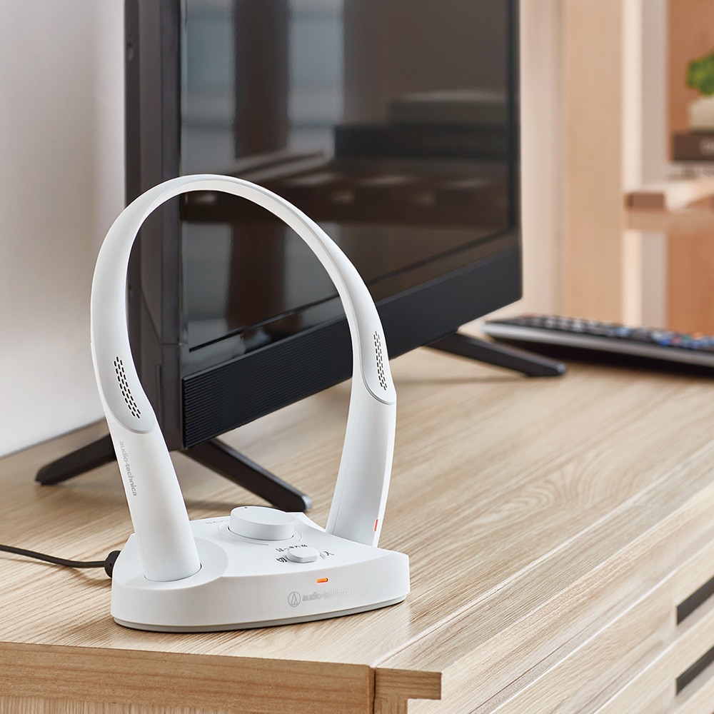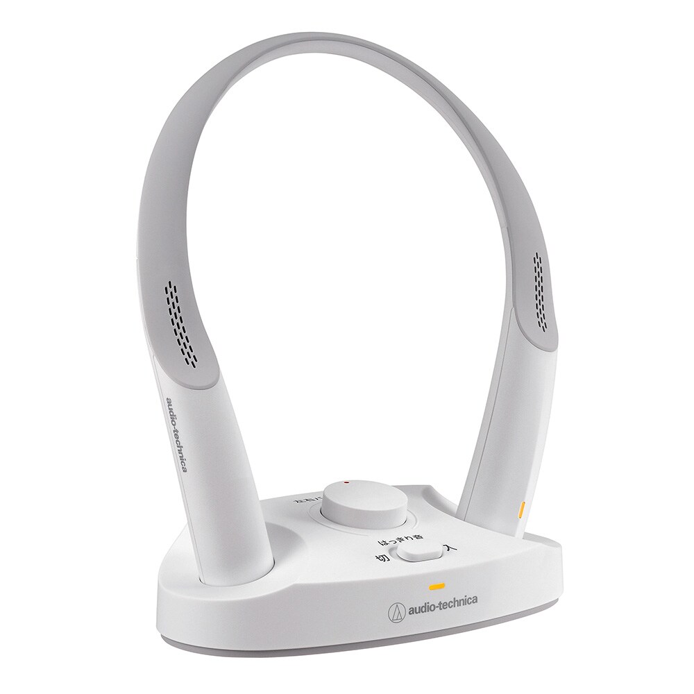 audio technica製のワイヤレスネックスピーカーです。軽量で疲れにくいデザイン。家事等をしながらテレビの音を聞くことができます。