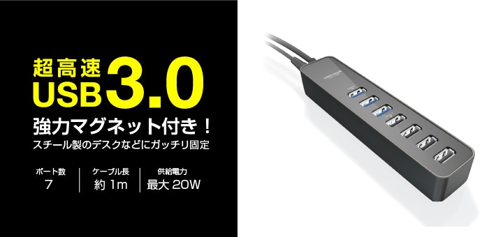 Comes with an AC adapter that ensures stable operation even with devices that consume a lot of power. A 7-port USB hub equipped with three USB 3.0 ports that achieves a transfer speed 10 times faster (theoretical value) than USB 2.0.