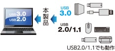 お手持ちのパソコンがUSB2.0/1.1の場合でも使えます。 将来USB3.0対応パソコンに買い換えてもそのまま使えます。