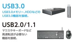 USB3.0メモリやハードディスクドライブなどのUSB3.0機器を接続するのに最適なUSB3.0ポートを3つ装備しています。