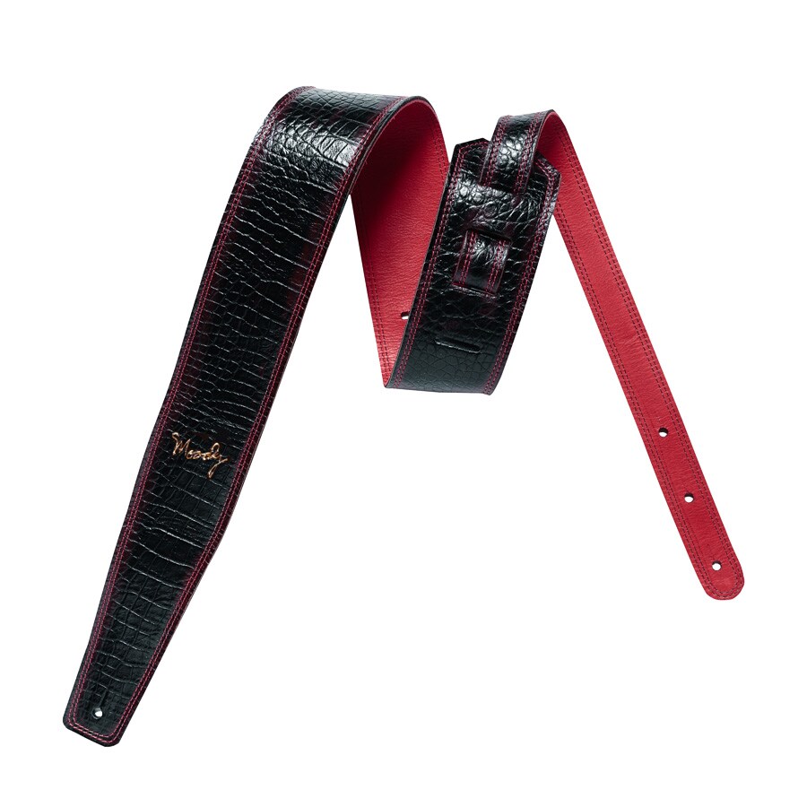 Moody Straps 2.5 inch black and red faux gaiter leather. Reinforced double stitching for durability.