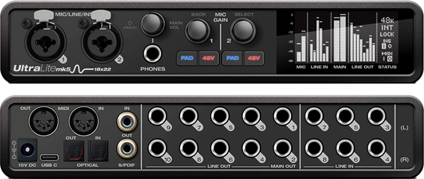 UltraLite-mk5は ESS Sabre32 ES9026PRO DAC を搭載し、125dBのダイナミックレンジと -114dB のTHD+N を実現。高音質に加え、堅実な動作と業界トップクラスの低レイテンシーを誇るMOTUの信頼性あるドライバーを提供します。