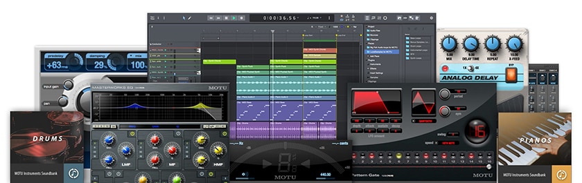 UltraLite-mk5をMacやPCに接続すれば、付属のPerformer Liteで楽曲制作をすぐに始められます。さらに、Big Fish Audio、Lucidsamples、Loopmastersによる多数のループやワンショットなどのサウンド素材も付属しており、登録後にダウンロードして利用できます。