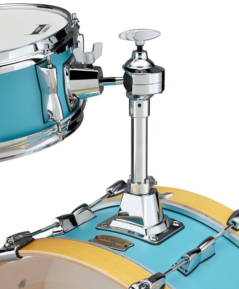 浅胴のバスドラムと小口径シェルの構成により、限られたスペースでも快適なセッティングを可能にしています。