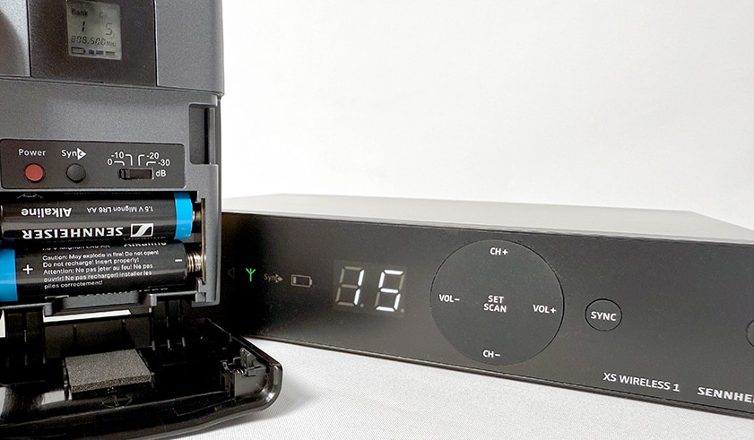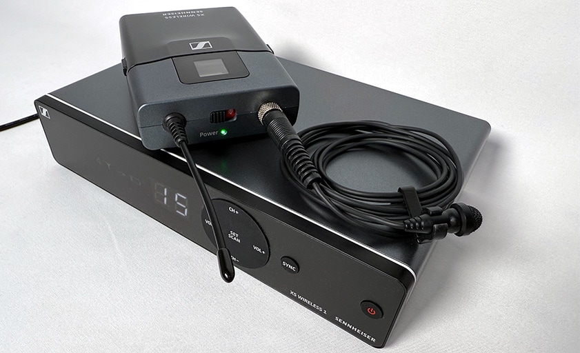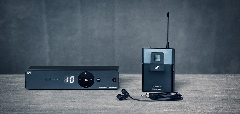 ■Overview XS Wireless 1 is a 1-channel wireless system that is ideal for vocals and speech. Designed with ease of use in mind, this analog UHF system features a sleek 1-channel receiver with built-in antenna and the streamlined interface of Sennheiser's popular XS Wireless 1 series. - Easy for anyone to set up - License-free B-type, up to 7 units can be used simultaneously (limited to use when transmitter and receiver are more than 5m apart and transmitters are more than 20cm apart) - Frequency setting is auto-setup with scan function - Handheld transmitter with easy-to-use vertical switch - Runs for approximately 10 hours on two alkaline AA batteries - Receiver has a built-in antenna for easy setup ■Specifications■EM-XSW 1 Modulation: Wideband FM Frequency range: 806.125 - 809.750 MHz Receiving frequency: Select from preset bank channels Receiving method: Antenna diversity Antenna input: Built-in antenna Squelch: Adjustable from 3dBμV to 28dBμV AF output level (peak deviation, 1kHz): 6.3 mm jack: +6 dBu, XLR -3M: +12 dBu Line / Mic level: 20 dB switchable AF output adjustment range: Adjustment range 45 dB (5 dB steps) Signal-to-noise ratio: -103 dBA Power supply: 12 V DC / 300 mA Housing: ABS Dimensions: Approx. 200 x 42 x 127 mm Weight: Approx. 340 g ■SK-XSW Frequency range: 806.125 - 809.750 MHz Transmission frequency: 30 frequencies RF output: 10 mW Mute switch: AF mute Input sensitivity adjustment range: 0 to -30 dB / 10 dB steps AF transmission range: 50 - 16,000 Hz (Line), 80 - 16,000 Hz (Mic) Power supply: 2 x 1.5 V alkaline AA batteries Operating time: Approx. 10 hours Housing: ABS Dimensions: Approx. 71 x 96 x 28 mm Weight: Approx. 95 g ■Included items ・EM-XSW 1 1ch receiver, SK-XSW bodypack transmitter, ME 2 lavalier microphone, NT 12-5CW AC adapter, 2 AA batteries