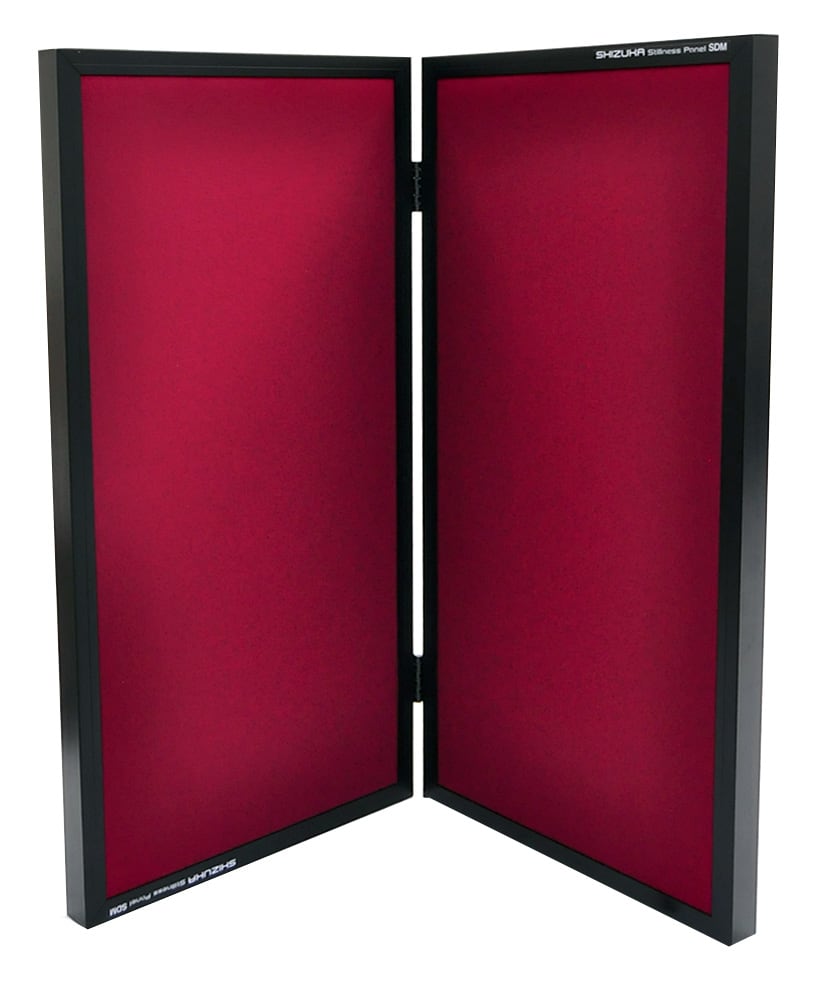 While it has the same sound absorption as the SHIZUKA Stillness Panel, it can be folded in two and stored in limited spaces such as cars. The panel is very light and can stand on its own without any screw attachment or processing, so it can be used in a variety of locations. With a sound absorption rate of over 90% in the frequency range of 500Hz and above, it can drastically reduce unnecessary reflected sound and reverberation at the site, so it can easily be used in temporary announcement booths. Specific ways to use SDM ・By placing it behind the speaker in the audio room, you can reduce reflections from the wall, allowing you to enjoy the original sound of the speaker. ・For home recording, you can place about four panels in total in front, back, left and right to reduce reverberation, and they are lightweight and easy to move, so you can create the recording space you want. ■900mm x 900mm ■Weight: 5.3kg ■Panel thickness: about 37mm ■Hinges are attached and it can be folded ■Material ・Sound absorption surface: Polyester ・Sound insulation surface: PVC (polyvinyl chloride) ■Color: Red