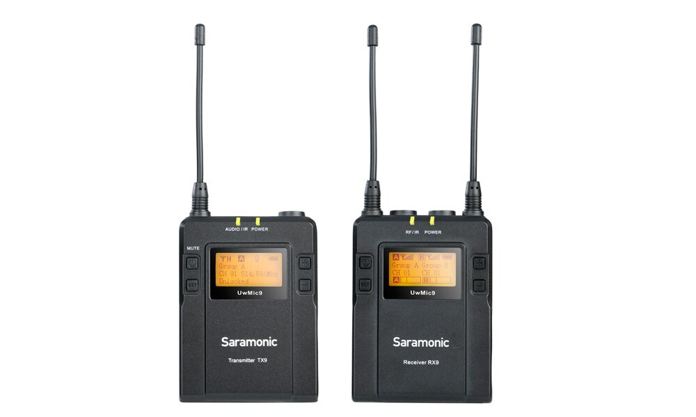 UwMic9 RX9 receiver x1 UwMic9 TX9 transmitter x1 Clip-on lavalier microphone x1 Transmission method: PLL Synthesizer Maximum reach: Up to 60 meters Output connector: 3.5mm mini jack Power requirements: 2 AA batteries Weight: Approximately 218.7g (excluding batteries) External dimensions: 170.9 x 63.5 x 30.0 mm Transmission type: PLL Synthesizer Maximum reach: Up to 60 meters Frequency band: 806.125MHz - 809.500MHz Signal to noise ratio: 70 dB or more Audio Input Connector: 3.5mm mini jack Power Requirement: 2 x AA batteries Audio Input: 3.5mm TRS lavalier microphone input Weight: Approx. 211.4g Dimensions: 170.9 x 63.5 x 30.0 mm Set the receiver channel using the following method. ① Using the Auto Scan function 1. Use the + or - button to display the Auto Scan screen. 2. Press and hold the SET button to select "Auto scan?" 3. Press the SET button to confirm. 4. The channel with the least noise and interference will be displayed and "Use CH..." will be displayed. 5. Press the SET button within 20 seconds to confirm the channel. ② Setting the receiver channel manually 1. Use the + or - button to display the channel menu on the receiver. 2. Press and hold the SET button to select the menu. 3. Use the + or - button to select the desired channel. 4. Shortly press the SET button to confirm. Once you have finished setting up the receiver, follow the steps below to set up the transmitter. 1. Use the + or - button to display the "Match with TX" menu on the receiver. 2. Use the + or - button to display the "Match with RX" menu on the transmitter. 3. Press and hold the SET button to select the menu, then press briefly to confirm. 4. Place the infrared transmitter port on the receiver close to the infrared detector on the transmitter. 5. "Sync finished!" will be displayed on the screen and the frequency to be used by the transmitter will be set.