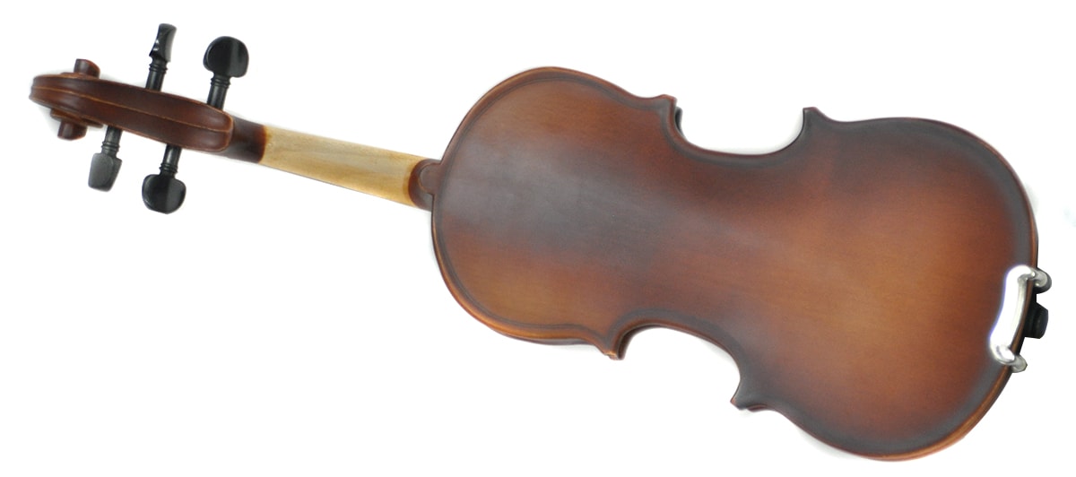 色の濃淡のついた艶消し塗装が特徴。美しい木目もお楽しみいただけるバイオリンです。