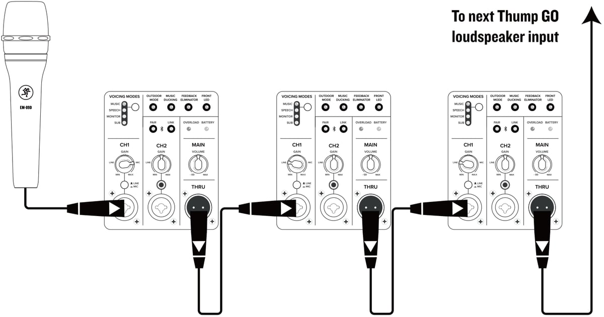 マイクのハウリング(フィードバック)を完全になくすには、音響の法則そのものを変えないと無理…ですが、Thump GO にはそれを自動で抑える「フィードバック・エリミネーター」モードを搭載。ボタンひとつで耳をつんざく音とはお別れ。気まずいスピーチとも、もうサヨナラです。