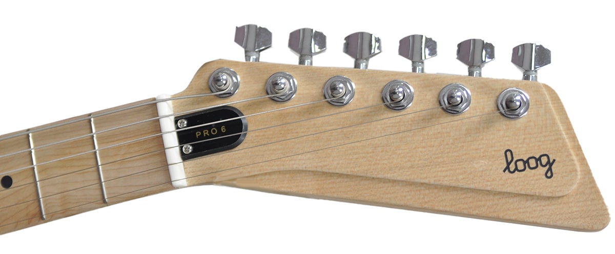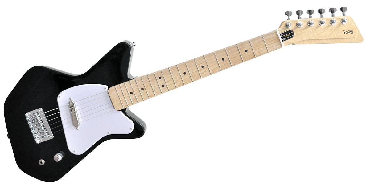 鮮やかでかわいいミニギター!実際持ってみると、ウクレレとほぼ同じサイズで小さいお子様でも持ちやすい大きさです。とにかくデザインと操作性にこだわって作られていて、ヘッドやピックガードのデザインが独特で目を引きます。初めて演奏する方でも分かりやすいコード表が付属されています。YoutubeのLoogチャンネルでは、たくさんの弾いてみた動画がアップされているので、動画を見ながら練習もできます!