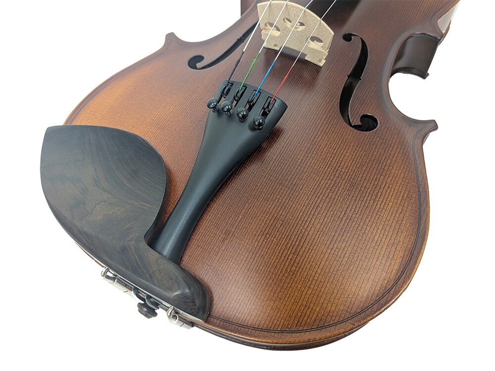 PLAYTECHより、単板材を使用したビオラPVA355のご紹介!サイズは15.5インチ、落ち着いた雰囲気のアンティークな艶消し仕上げが特徴です。楽器は駒を立てた状態で発送されるので、お手元に届いてからすぐに音が出せます!実際に演奏してみるとPVA200シリーズに比べて厚みのある重厚な音色が特徴で、低音が心地よく響くビオラだと感じました。付属のケースはシェイプド型で弓が2本収納可能。そのほか弓、松脂、肩当、チューナーもついてきます。弊社オリジナルブランド、PLAYTECHのPVA300シリーズをぜひご検討ください!