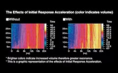 I.R.A.(Initial response Acceleration)は、完成後の楽器に適切な振動を与えることで、完成直後の楽器に内在する塗料や接着剤等のストレスを軽減し、楽器の振動を促進させる技術です。プレイヤーの皆さんは楽器を「弾き込むこと」がいかに重要であることをご存じのことでしょう。弾き込むことによって「鳴りがよくなる」といわれています。その理由は、ネックと指板などの木材間、木材と塗膜間、材とハードウェア間などに生じているストレスが、弾き込むことによって馴染んで一体となって響くようになるからです。I.R.A.(Initial response Acceleration)の処理を施すことで、ベースは弾き込んだ状態に近くなり、理想的なボディ鳴りを引き出します。