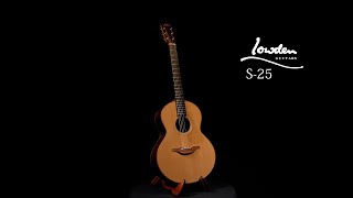 「Lowden Guitars」オリジナルシリーズの中で一番小さいサイズのS-25は、見た目は小さくとも鳴りはしっかりと力強く響きます。トップ材はレッドシダーとなり、その温かみのある繊細で上品な音色はソロギターなどを弾くには最高の一本です。レッドシダーはスプルースなどに比べると丸みがあって温かみがある反面、こもった音色になりがちなのですが、サイドとバックがローズウッドのクリアな音色でなんとも言えない木材のハーモニーを感じることができます。
