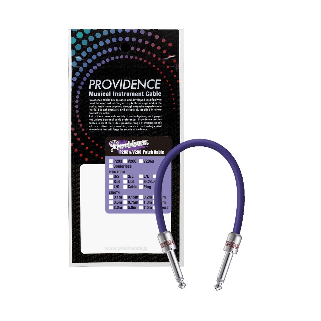 PROVIDENCE製パッチケーブルで最も有名なモデルはこのP203です。ギター/ベース問わず、プレイヤーでこの紫被膜ケーブルを知らない方はいないかと思います。ケーブルは柔らかくしなりがあり、断線しにくい印象です。同じパッチケーブルを約10年間ボードに入れて使ったことがありますが、特に断線などはありませんでした。さすがにプラグ部の消耗(メッキ剥がれなど)はありますが、消耗品なので当たり前ですね。新しいケーブルに変えるだけなので問題ありません。SS、SL、LL、CLANKとバリエーションが多く、特にCLANKモデルはあらゆる場面で重宝します。