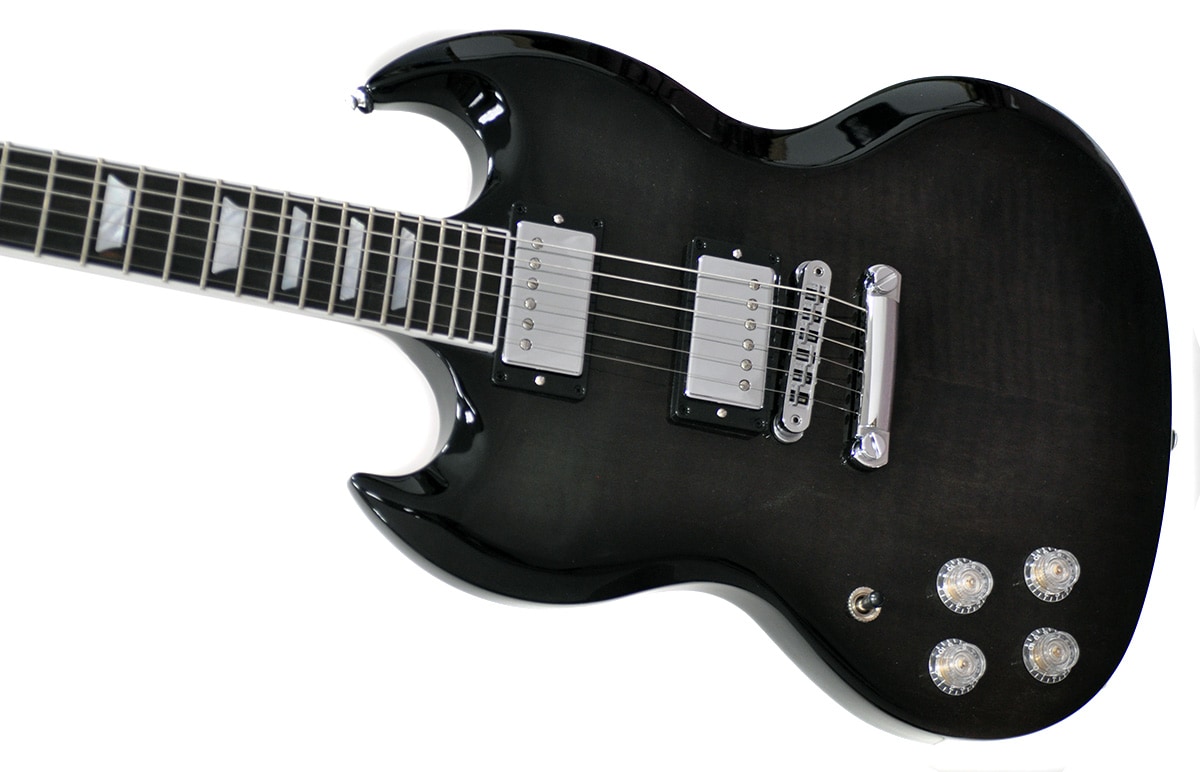 クラシックな往年のSG同様に形状が整えられたボディ部は、レスポール同様にAAメイプル・トップとマホガニー・バックを擁しています。この材構成は優れた音響特性とサスティンの点で定評があります。エボニー材による24フレット仕様のコンパウンド・レイディアス指板と非対称形状のスリムテイパー・ネックの採用により、最高音のフレットまでスムーズなフィンガリングがプレーヤーに約束されています。