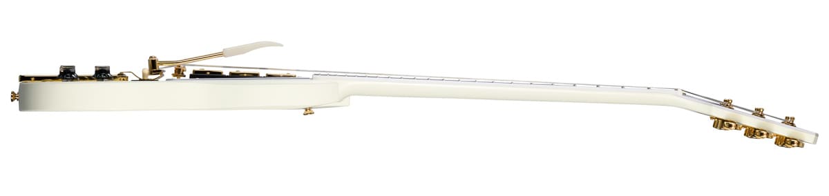 Pickguard:3-ply White; White Tenon Cover with "Les Paul Custom" in Black Text
