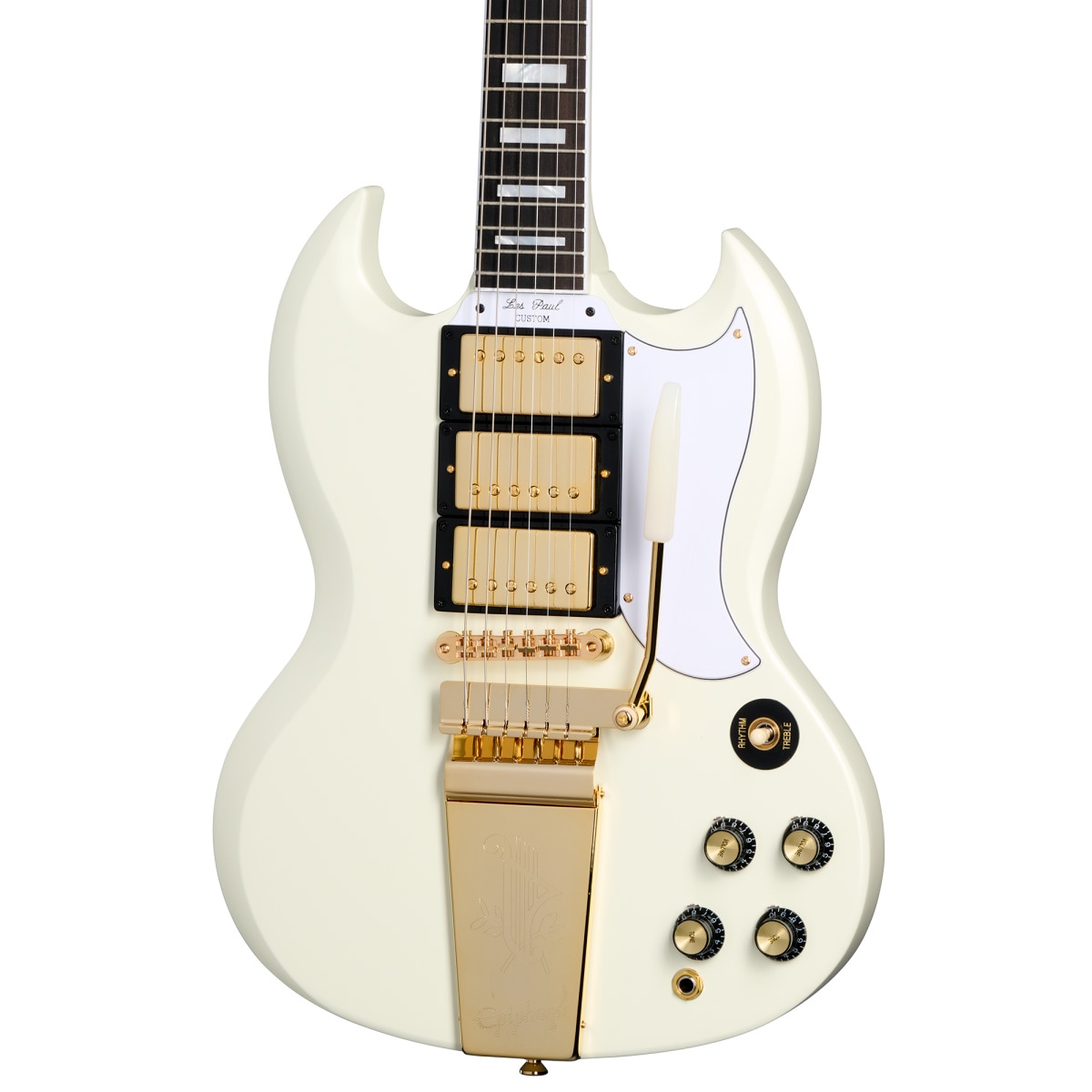 This model is an exact replica of Gibson's classic vintage model from 1963, the first year the Maestro Vibrola-spec SG Custom was introduced and the last year the “Les Paul” name was used for the SG Custom.