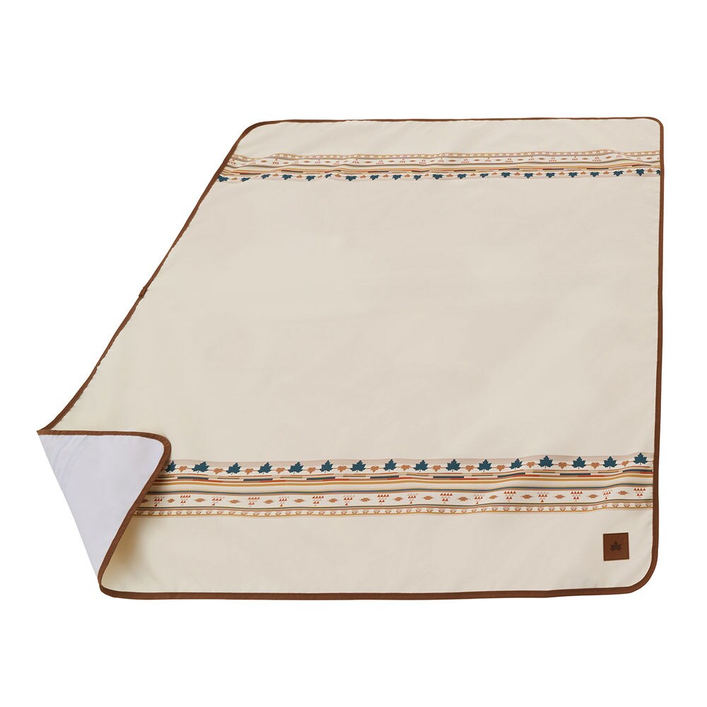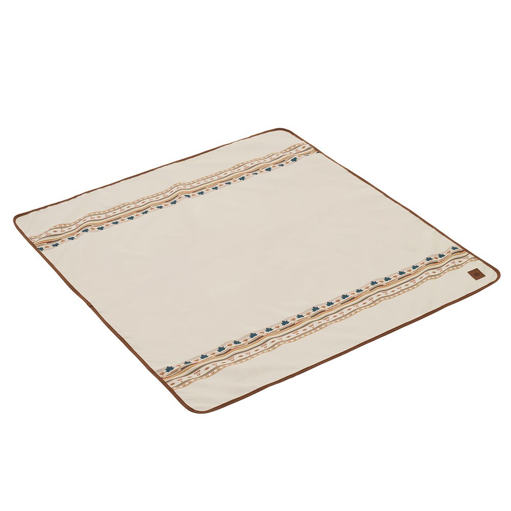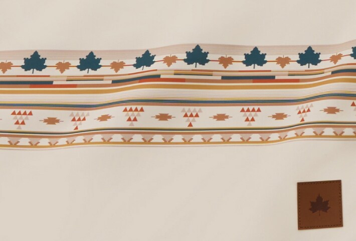 A new LOGOS original Navajo pattern is designed on a waterproof sheet made of polyester fabric. It has a pop and calm atmosphere, and the key point is the synthetic leather tag with a maple leaf stamp.