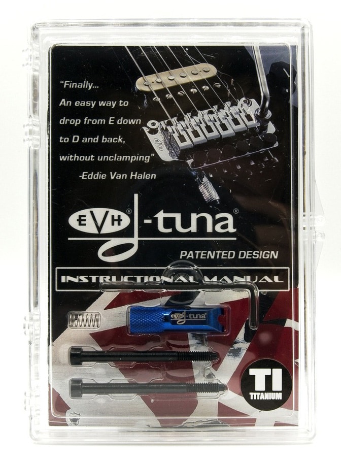 EVH D-Tuna is Eddie Van Halen's idea for a drop-D system for Floyd Rose, a patented item that allows the 6-string to be instantly tuned down and back up from E to D.